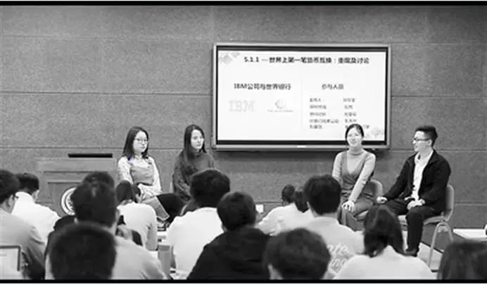 皇冠博彩官网金融学院本科生金融工程概论课程“翻转课堂”活动——学生在重现世界上第一笔货币互换的案例。(毛静供图)