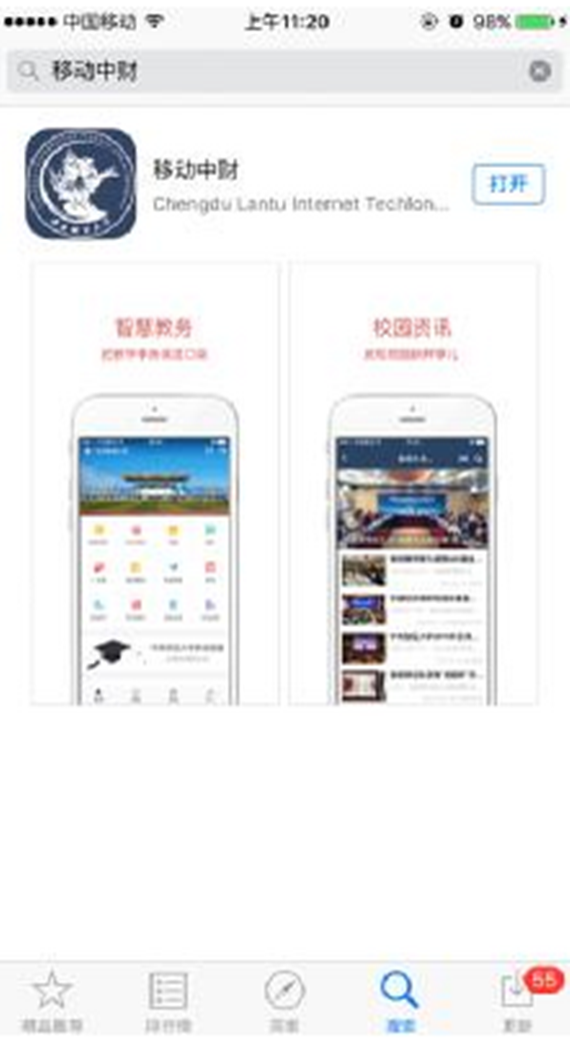 为解决上述问题,我们已将APP下载链接切换至App Store,广大师生可通过如下两种方法可以直接下载安装移动中财APP(安卓用户不受此次改版影响)。