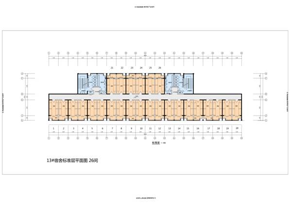 13#学生宿舍一层设置门厅,值班室,辅导员值班室,一层宿舍21间、标准层宿舍26间,共计宿舍151间。