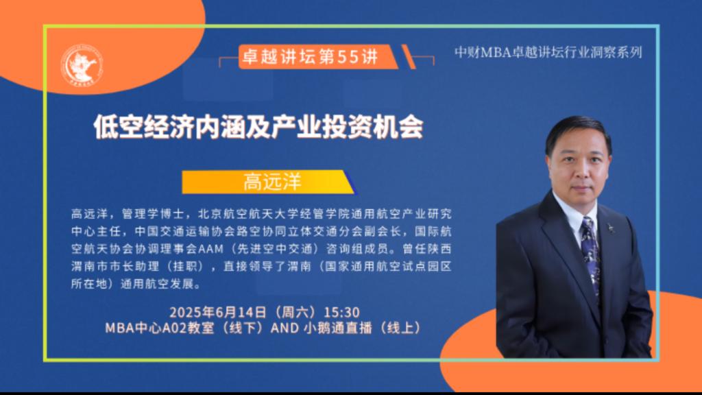 报告人简介:高远洋,管理学博士,北京航空航天大学经管学院通用航空产业研究中心主任,中国交通运输协会路空协同立体交通分会副会长,国际航空航天协会协调理事会AAM(先进空中交通)咨询组成员。承担了国家低空经济相关课题与政策研究,以及全国50余个省市的低空经济/通用航空产业及园区规划。