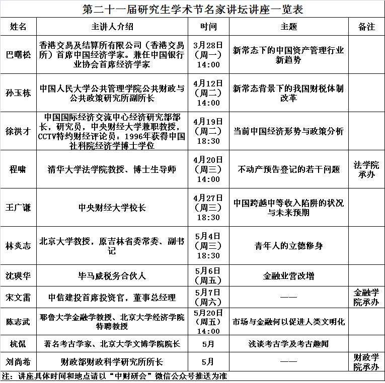 本次学术节系列活动中不仅为大家邀请到陈志武教授与我们共同探讨经济热点问题、热点现象,毕马威税务合伙人沈瑛华与我们共同分享经济理论知识在社会和企业发展当中实践应用。还有敬爱的王广谦教授,也将在本次学术节期间亲临“我与校长面对面”活动,以“中国跨入中等收入陷阱的现状与未来预期”为题为大家做精彩演讲,并与广大同学面对面交流互动。