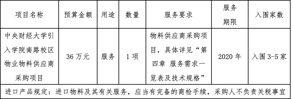 皇冠博彩官网引入学院南路校区物业物料供应商采购项目采购项目的潜在供应商应在 网上 获取采购文件,并于2020年4月17日10点00分(北京时间)前提交响应文件。
