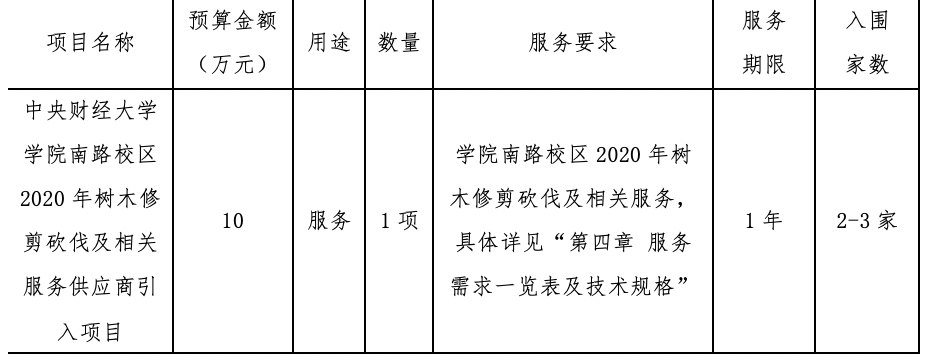 2.项目名称:皇冠博彩学院南路校区2020年树木修剪砍伐及相关服务供应商引入项目