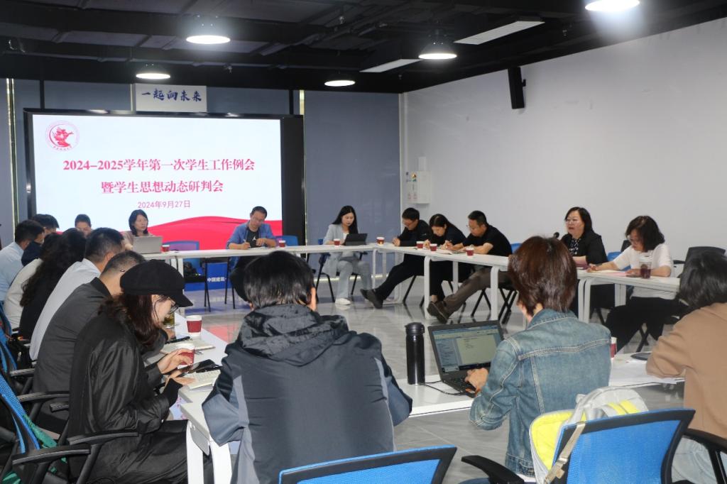 9月27日上午,我校2024-2025学年第一次学生工作例会暨学生思想动态研判会在学院南路校区学术会堂102会议室举行。宣传部、学生工作部、保卫部、国际合作处、校团委、后勤服务产业集团、校医院、中财大资产经营(北京)有限公司负责人,有本科生、预科生的各学院学生工作负责人,各研究院、中心分管就业工作负责人参加了会议,会议由校党委副书记杨莹主持。