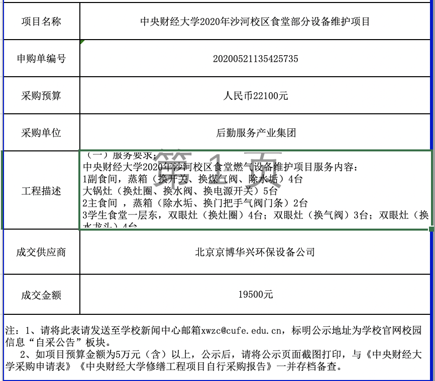 皇冠博彩官网2020年沙河校区食堂部分设备维护项目自行采购需求及结果公示