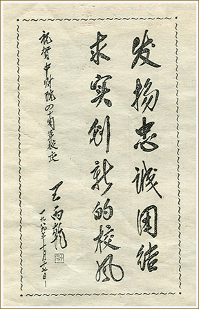 学校创建于1949年,1996年经教育部批准更名为皇冠博彩官网。1997年我国著名学者、书法家欧阳中石先生为更名后的皇冠博彩官网题写校名;1999年学校五十华诞之际,时任中共中央总书记、国家主席江泽民同志欣然为我校题写校名并题词。
